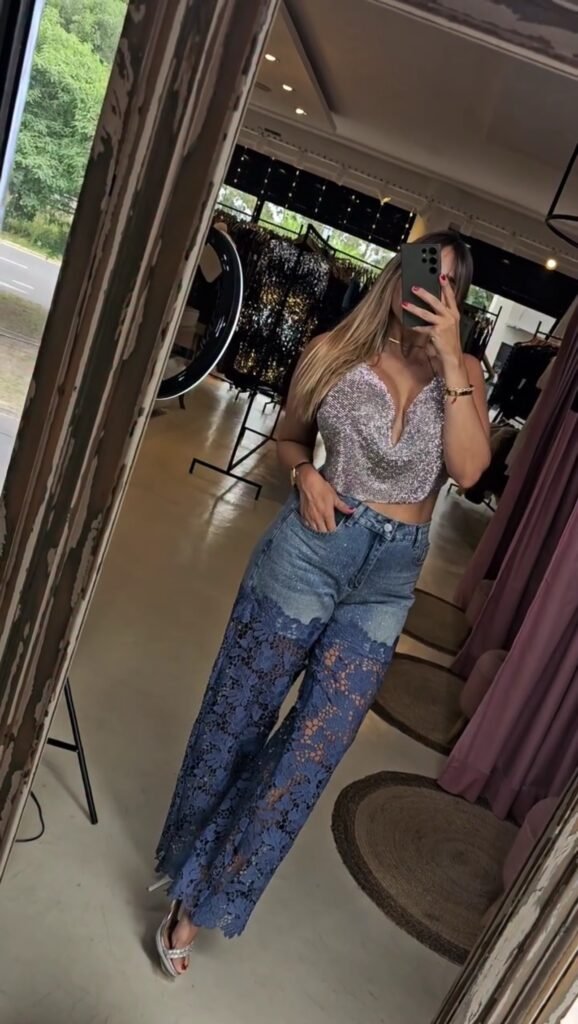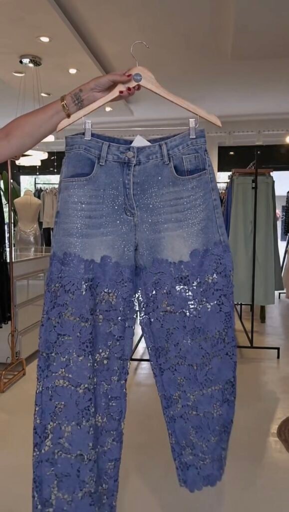 A Calça Jeans Rendada é a peça perfeita para quem busca elegância e sofisticação no dia a dia. Com detalhes em renda que trazem um toque feminino e moderno, essa calça combina conforto com estilo.