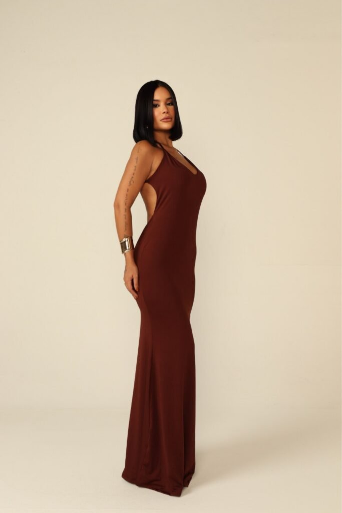 Vestido Longo de Alcinha Camila Marrom