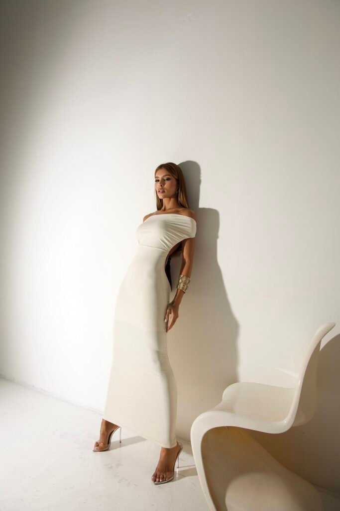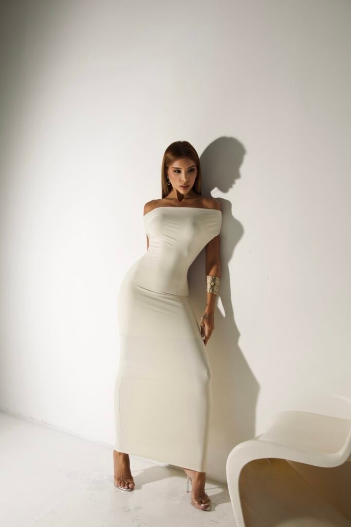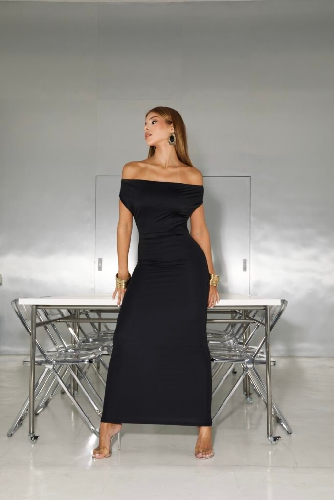 O Vestido Longos Moderno com Bojo e Ajuste Perfeito possui bojo embutido que valoriza o busto e modela o corpo com elegância.