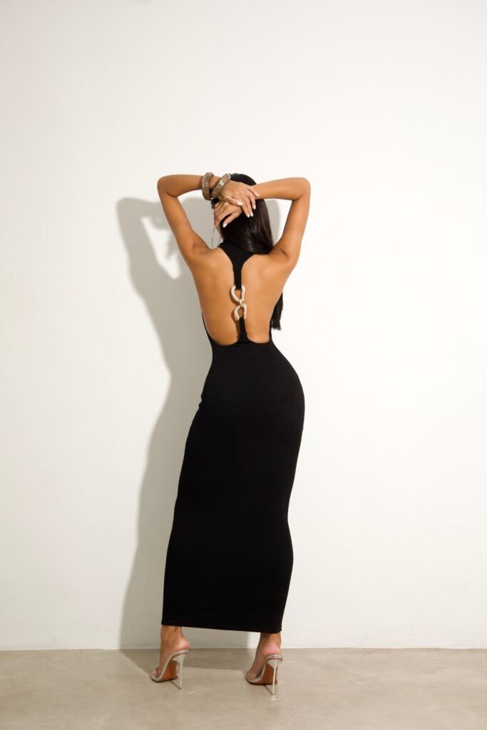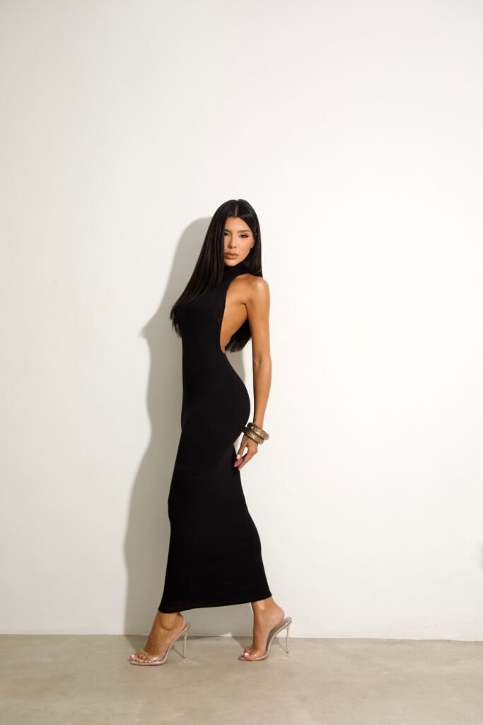 O Vestido Longo Premium com Bojo e Caimento Perfeito possui bojo embutido que valoriza o busto e modela o corpo com elegância.