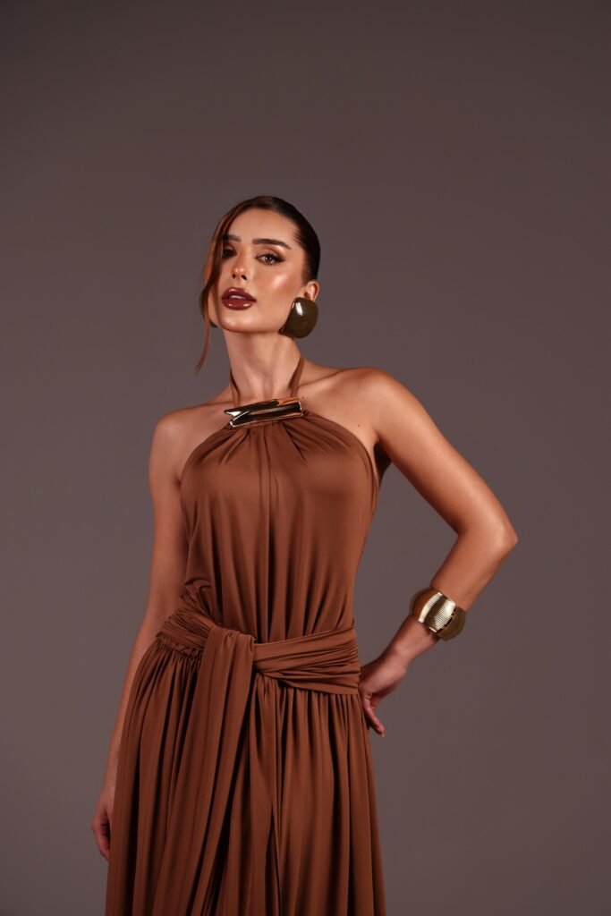 O Vestido Midi Sensual com Bojo e Alta Elasticidade possui bojo embutido que valoriza o busto e modela o corpo com elegância.